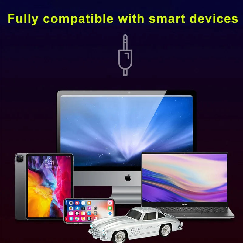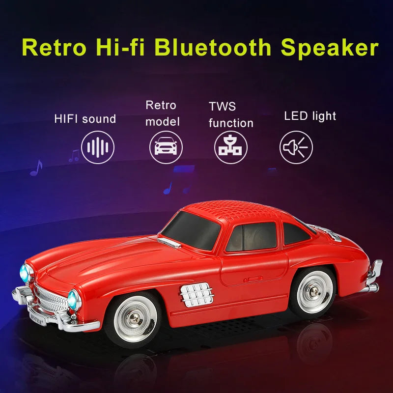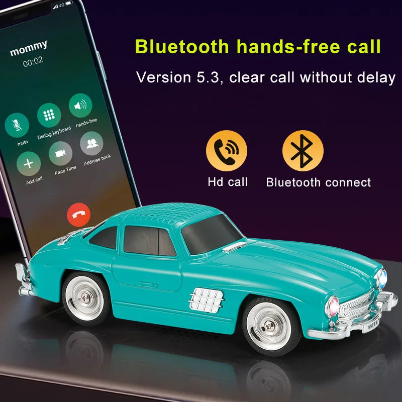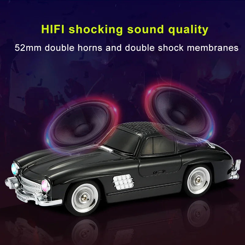 Enjoy powerful, retro-style sound with this wireless Bluetooth speaker shaped like a classic car. It delivers rich, immersive audio with Hi-Res and 3D surround modes. Play your favorite tunes via Bluetooth, TF card, U disk, or FM radio. Compact and portable, it’s perfect for home or on the go, with a rechargeable battery and waterproof design. Get ready to rock your music with style and fun!