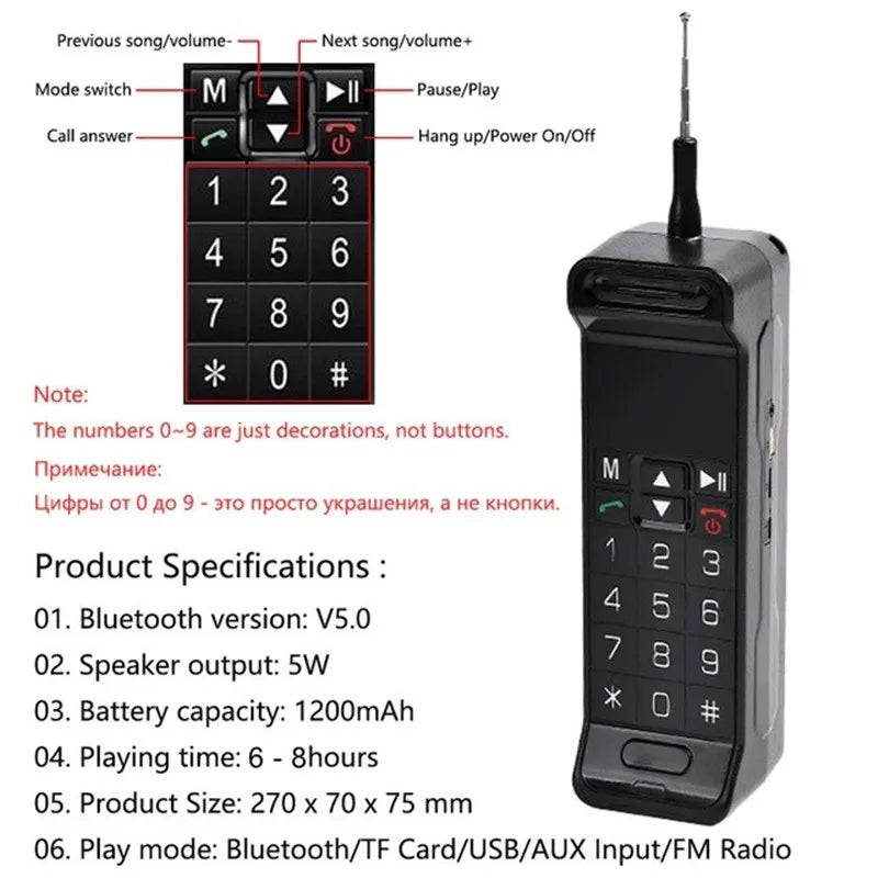 Bring vintage vibes with a modern twist using the LIUTIANFEI Bluetooth Retro Cellphone Portable Speaker! Sporting Bluetooth 5.0, a built-in mic, and a colorful display, this playful little speaker rocks full-range stereo sound with a wireless subwoofer. Available in black, blue, gray, and red, it plays MP3s, supports FM radio, memory cards, and more—perfect for jamming at home or on the go!